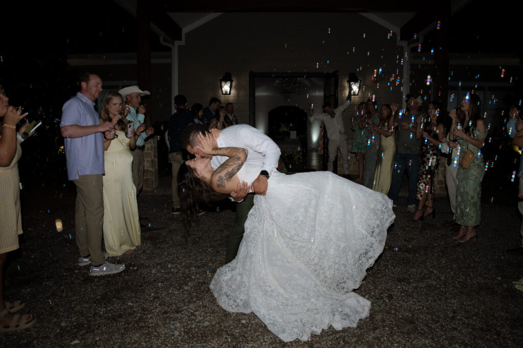 They made it through the ceremony just in time, but about 45 minutes later, during bride and groom portraits, the first sprinkles started falling. They grabbed each other’s hands and ran inside just as the skies opened up into a full Texas downpour.