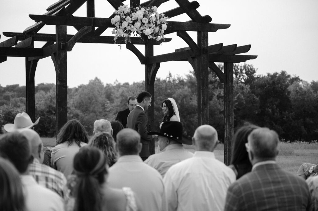 If you’ve planned a spring wedding in Texas, you know the weather always likes to keep things interesting. The day was hot and humid, and as their outdoor ceremony began, dark clouds slowly rolled in. One of those moments where everyone is watching the sky but staying hopeful.