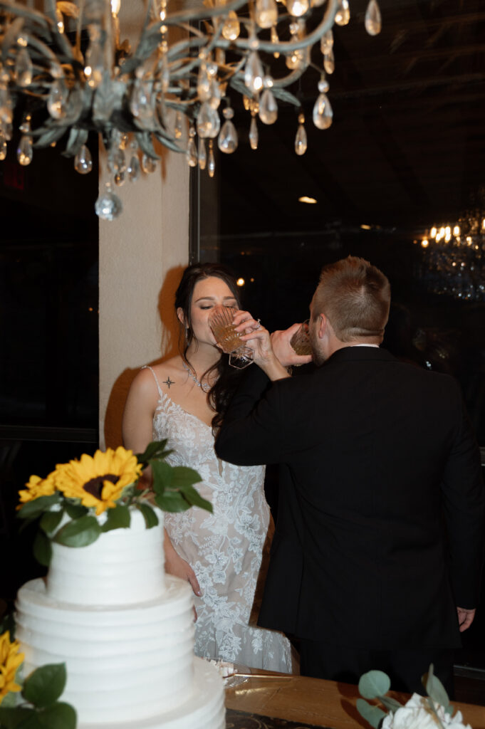 We hopped into a side-by-side and drove out to a quiet spot on the property near the water for Tarin and Colton’s bride and groom portraits. Getting away from the main area for a few minutes gave them a chance to breathe, laugh together, and soak in the fact that they had just gotten married.