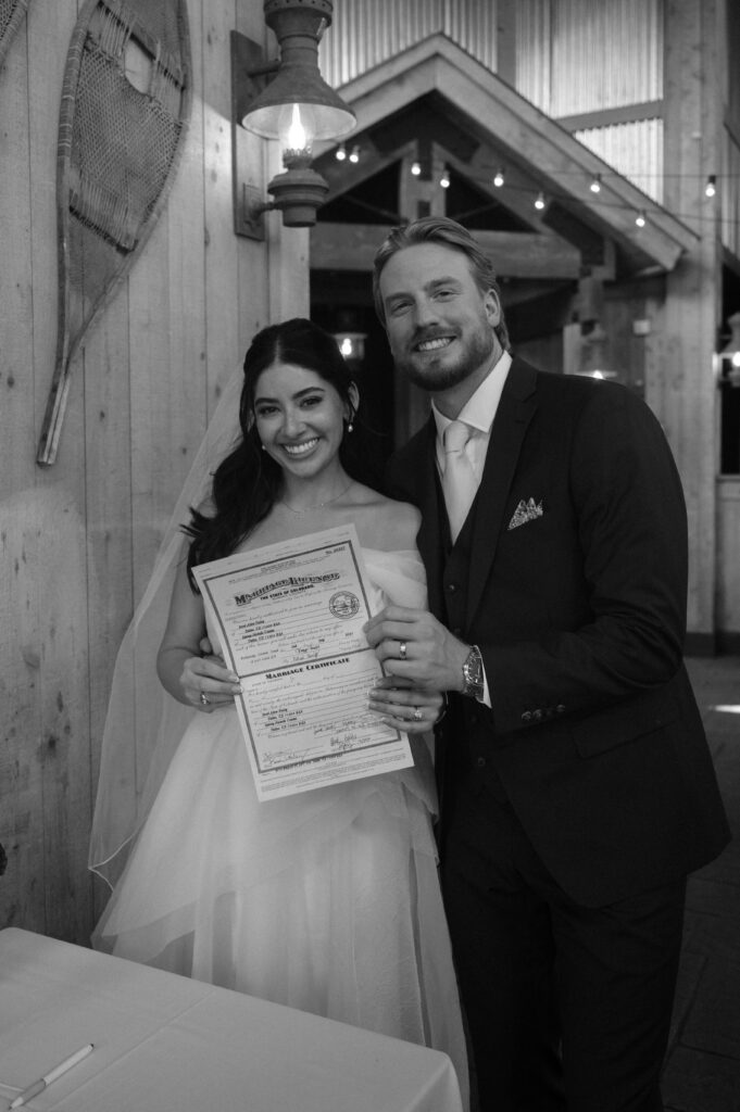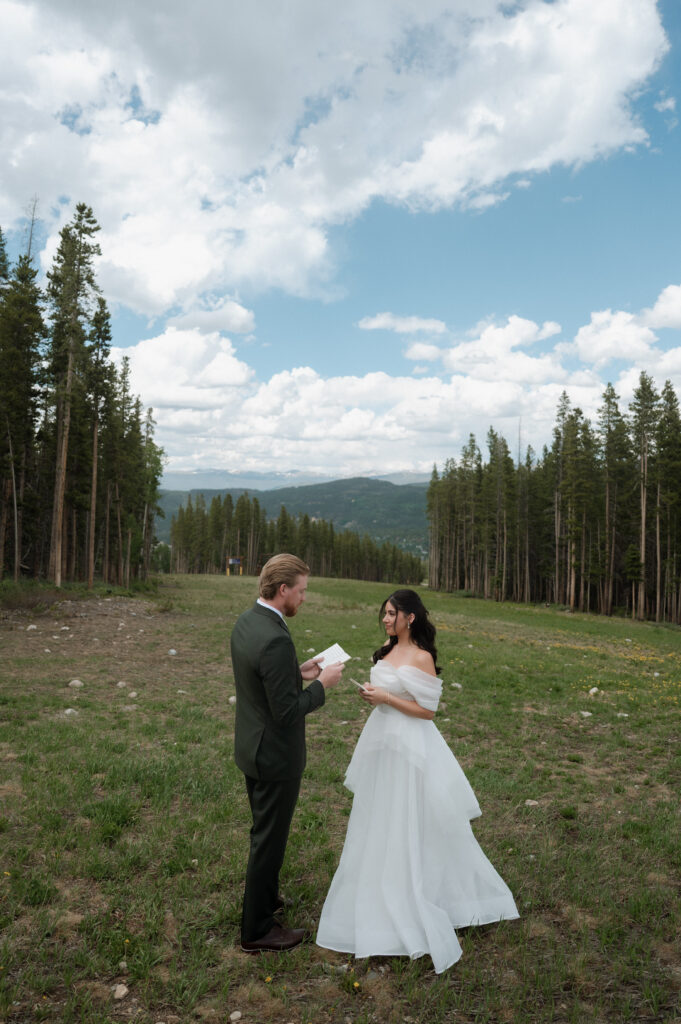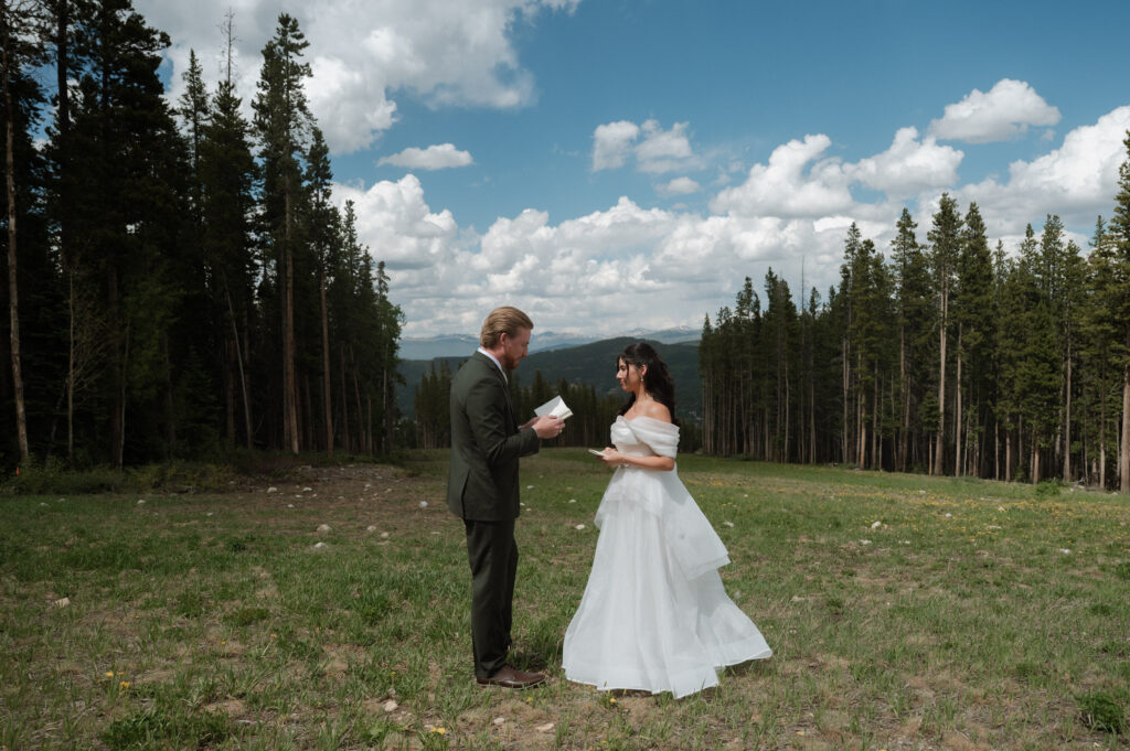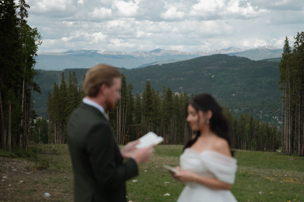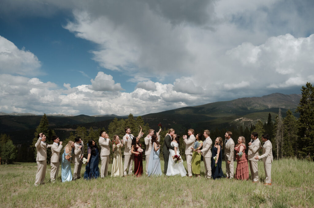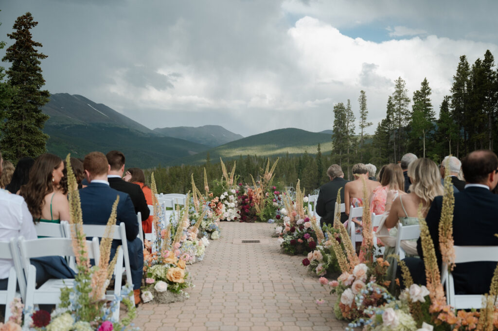 Their ceremony at TenMile Station in Breckenridge was already stunning, with panoramic mountain views behind them. But just as the ceremony began, a storm rolled through the mountains, creating deep, dramatic clouds that somehow made the entire scene even more beautiful & romantic.