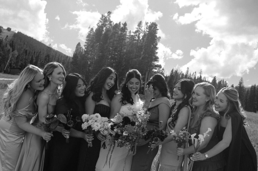 The girls got ready together at a nearby hotel in Breckenridge before heading over to TenMile Station, one of the most scenic Colorado mountain wedding venues. Tucked in the mountains above Breckenridge, the venue overlooks sweeping alpine views that honestly feel unreal yet so cozy and relaxing in person.